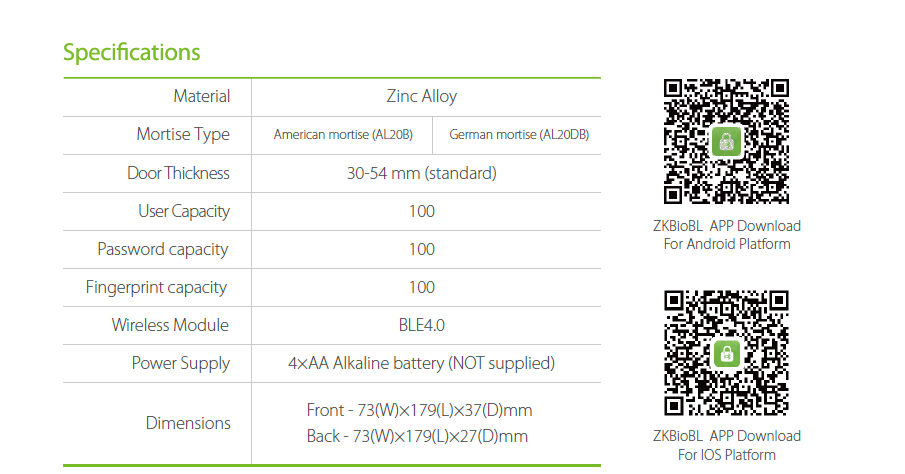- BLE 4.0: Unlock your door using dedicated mobile App on your smartphone